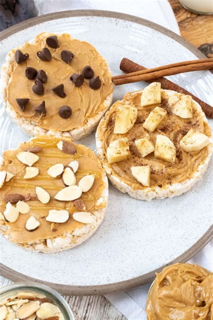 Rice cakes are a good mini-snack to hold you over in between meals. Eating frequent small snacks can give you the energy to stay active and maintain good health. A healthy snack, like a rice cake with nut butter, can be a filling in-between snack.