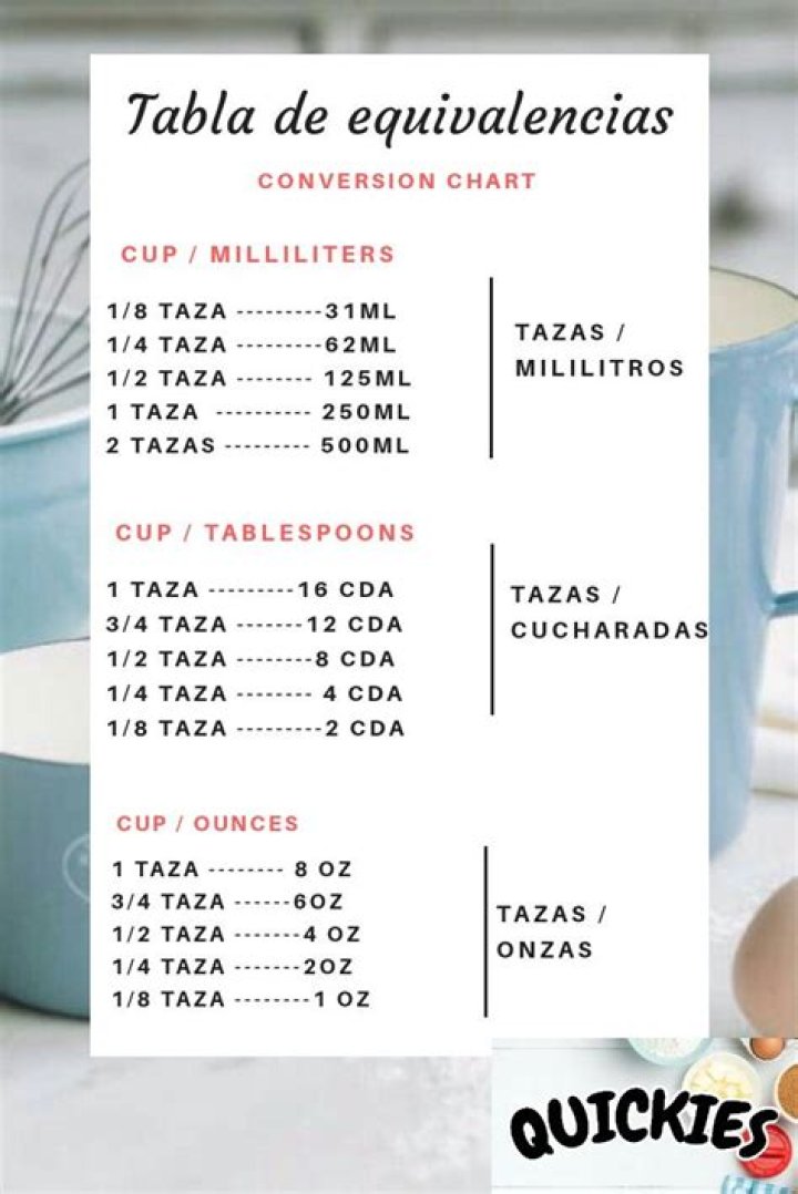 TazasOnzas LíquidasCucharada18163/46122/35111/248