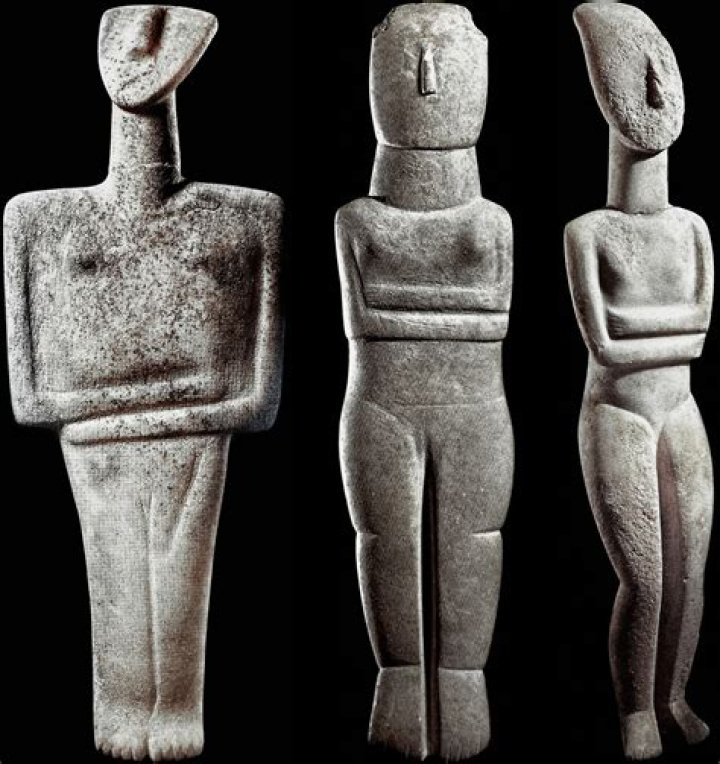 What Facial Feature Are Ancient Cycladic Sculptures Thought To Have Had Painted On Different Places Of Their Bodies? As the oval-shaped head tilts back, they do not have any sculpted features other than the nose – they are naked with their arms crossed across their chest (always with the right arm under the left).How did high classical Greek period artists achieve ideal figures?