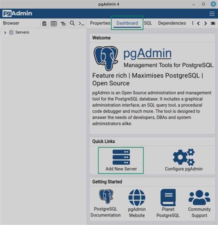 Select Database using pgAdmin You can also select the database and open SQL Query window in pgAdmin UI. Step 1: Select the database, by clicking on it. Now, click on the Tools drop down menu and click on Query Tool . Now, a new window appears with a connection make to the database you selected.