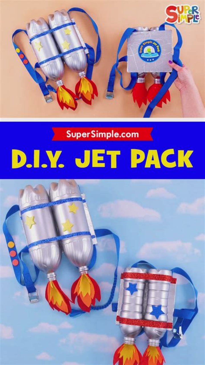 Whether you’re throwing a birthday bash for your little one or just need an easy activity to keep them occupied, try this simple jetpack craft! Materials: You’ll need two plastic two-litre bottles, silver duct tape and paint, scissors, a paintbrush, tissue paper, cardstock, ribbon and glue.