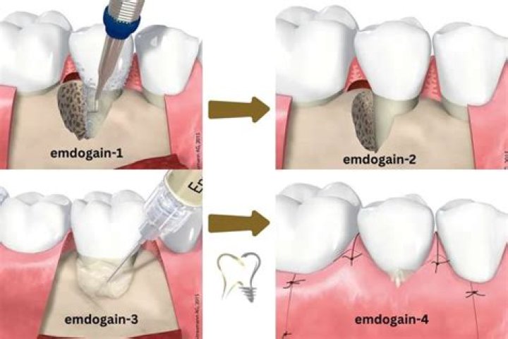 Similarly to the way stem cells work to generate new cell growth, Emdogain, a protein-derivative EMD, uses growth factors that the body naturally produces to regenerate lost gum tissue, bone, and structural anchors that keep the teeth secure in the jawline.