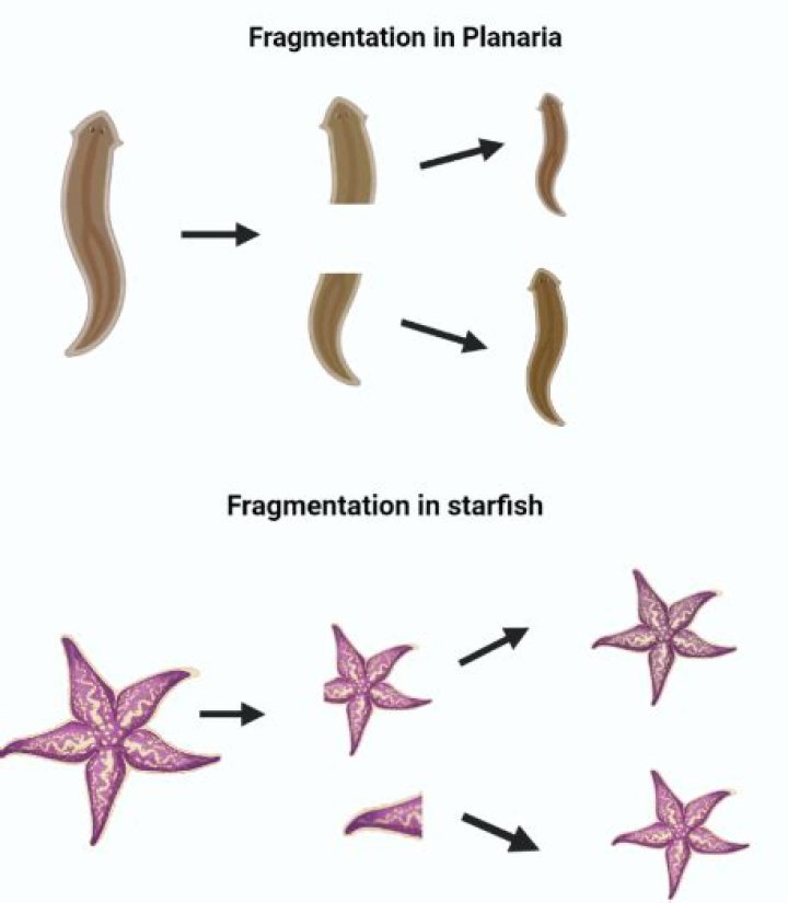 Answer: Fragmentation, also known as splitting, as a method of reproduction is seen in many organisms such as filamentous cyanobacteria, molds, lichens, many plants, and animals such as sponges, acoel flatworms, some annelid worms and sea stars.