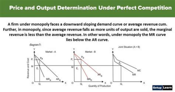 PRICE-OUTPUT DETERMINATION UNDER MONOPOLY: A firm under monopoly faces a downward sloping demand curve or average revenue curve. … In other words, under monopoly the MR curve lies below the AR curve. The Equilibrium level in monopoly is that level of output in which marginal revenue equals marginal cost.