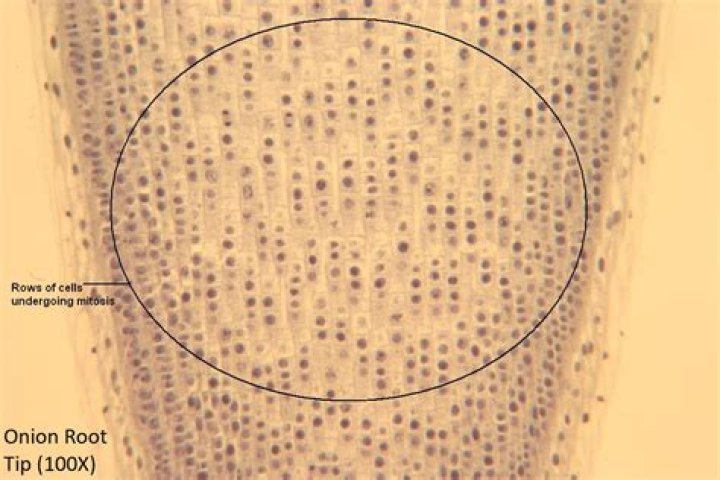 Cell division occurs rapidly in growing root tips of sprouting seeds or bulbs. … The onion root tips can be prepared and squashed in a way that allows them to be flattened on a microscopic slide, so that the chromosomes of individual cells can be observed easily.