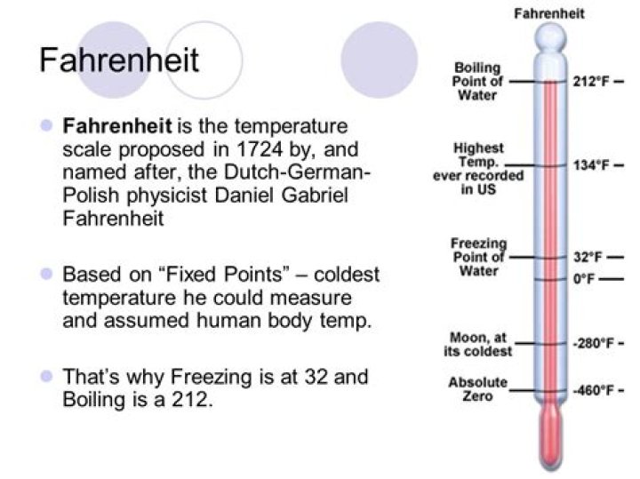 He originally had the scale in the opposite order of the scale used today — 0°C was the boiling point of water, and 100°C was the freezing point — but other scientists later reversed the scale. The Fahrenheit scale was first proposed in 1724 by the German physicist Daniel Gabriel Fahrenheit.
