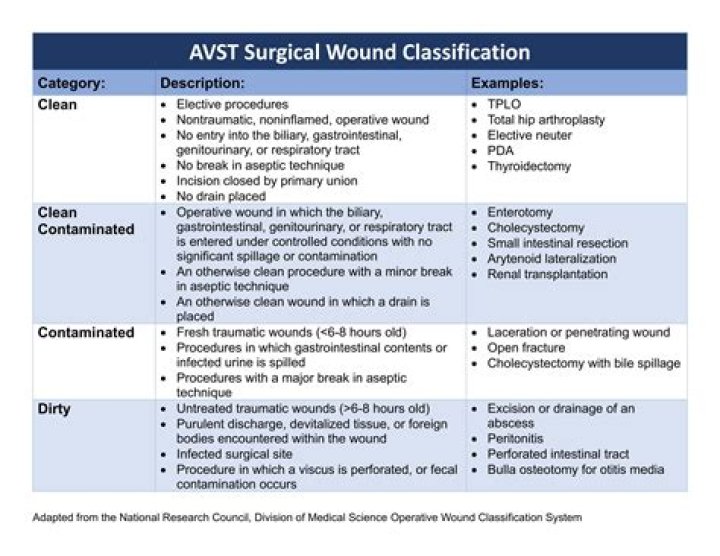 What are the four types of surgical wounds?