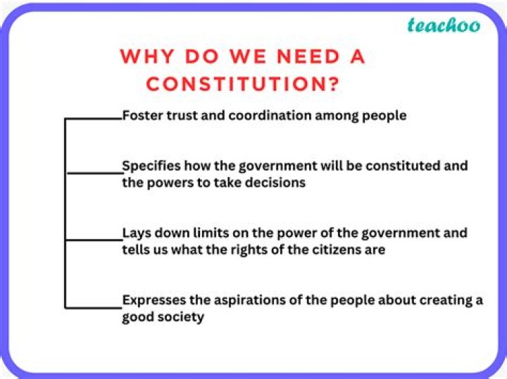 It specifies how the government will be constituted, and who will have power of taking which decisions. It lays down limits on the powers of the government and tells us what the rights of the citizens are. It expresses the aspirations of the people about creating a good society. (Any three)