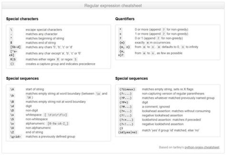 A regular expression (shortened as regex or regexp; also referred to as rational expression) is a sequence of characters that specifies a search pattern. Usually such patterns are used by string-searching algorithms for “find” or “find and replace” operations on strings, or for input validation.
