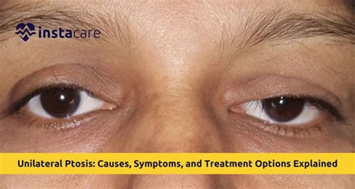 Ptosis is more common in older adults. It happens when the levator muscle, which holds up your eyelid, stretches or detaches from the eyelid, causing it to droop. It causes the appearance of asymmetrical eyes, so one eye looks lower than the other.