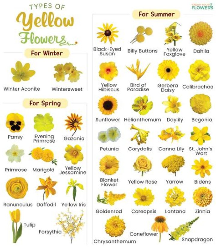 Daffodil Daffodils are perhaps the most famous yellow flowers. Their three-dimensional blooms along with the fact that they are a sign that spring has sprung makes them popular. I love seeing a yard full of blooming daffodils. It’s too bad the blooms don’t last long.