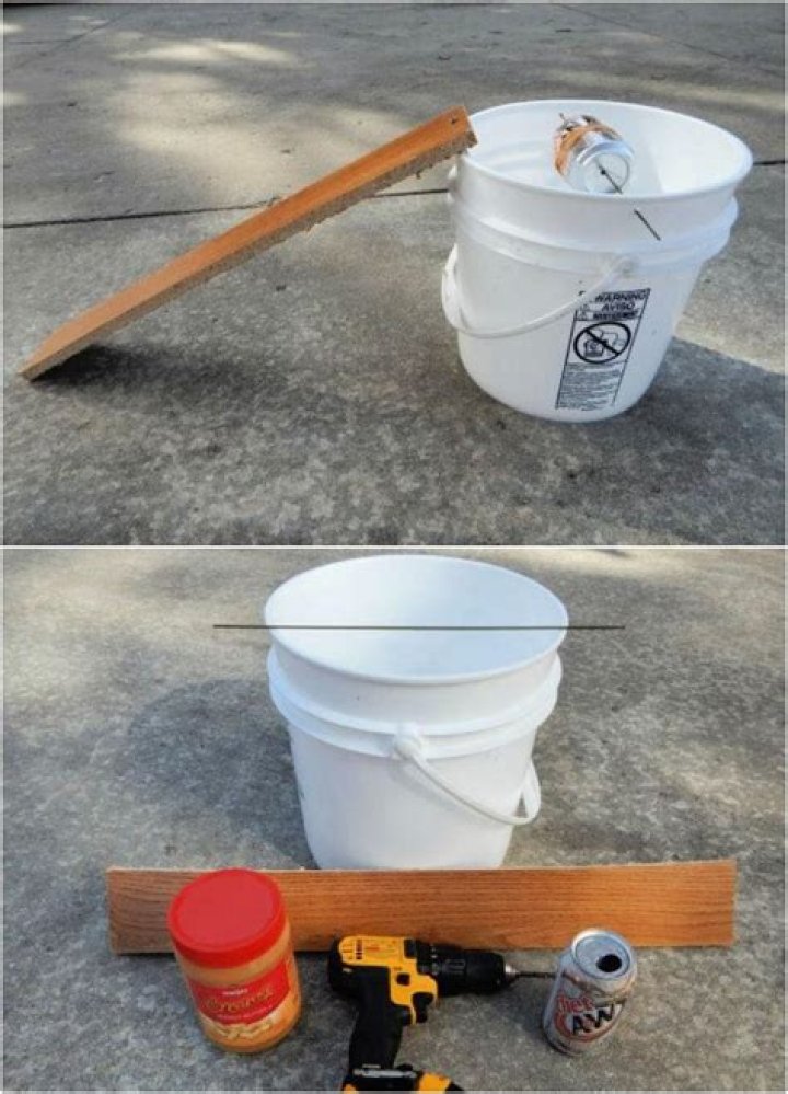 To make this trap you need a four gallon plastic bucket, a soda can, and a round pin (a dowel) made of wood or metal. You will also need a piece of wood (scrap or a small branch) and some peanut butter.Can mice climb out of buckets?