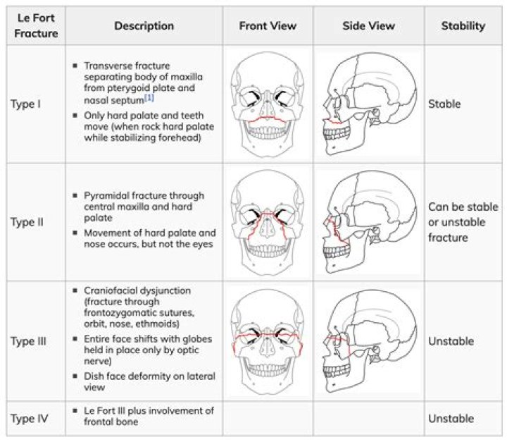 Treatment of a Le Fort fracture usually requires prompt stabilization of the fracture followed by surgery, in order to restore the typical facial orientation, re-establish proper positioning of the teeth, restore involved sinus cavities, and reunify the nose and eye socket.