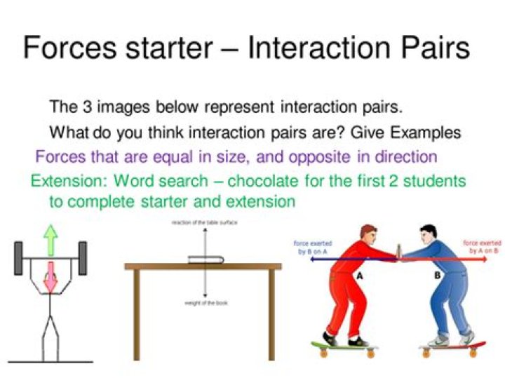 That is, if one object acts on another with the force , the second object must act back on the first object with the force equal in magnitude but opposite in direction: These two forces are referred to as an “interaction pair”. … So, the two forces acting on you as you sit on a chair are not an interaction pair.What is it called when two forces meet?