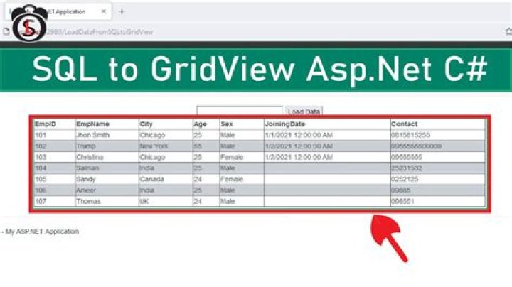 Gridview in ASP.NET Gridview is a control in asp.net, displays the values of a data source( sql server database) in a tabular form where each column represents a field and each row represents a record. The GridView control also, enables you to select, sort, and edit these items.
