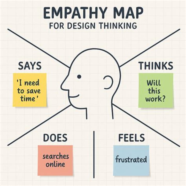 An empathy map is an illustration that helps design thinkers more clearly understand their customers. More than that, it is a tool to help designers gain a deeper understanding of their target audience. … An empathy map then helps designers get to know their customers by putting themselves in their shoes.