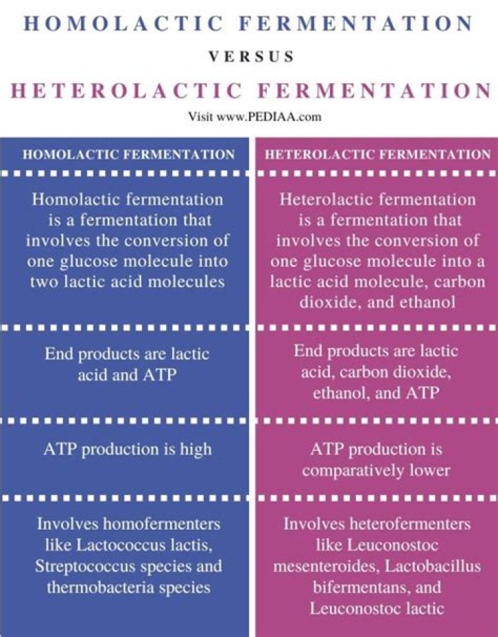 The primary difference between the two is that: In homolactic fermentation, a single molecule of glucose is ultimately converted to 2 molecules of lactic acid. In heterolactic fermentation, a single molecule of glucose is ultimately converted to carbon dioxide, ethanol and lactic acid.