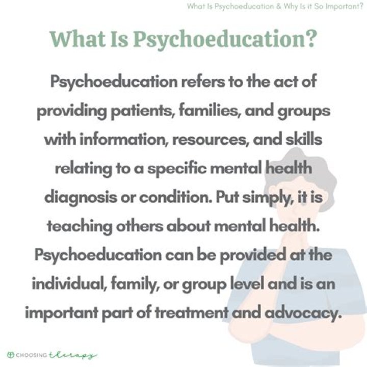 Psychoeducational groups provide therapeutic help for people suffering from addiction or eating disorders, so they learn how to manage their symptoms, behaviors, and results. These group therapies focus on specific topics affecting members of the group. Some group sessions include lectures, videos or other materials.When is psychoeducation used?