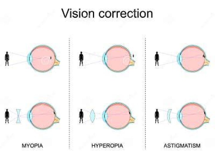 The most common refractive errors are astigmatism, hyperopia (farsightedness) and myopia (nearsightedness). Astigmatism is a condition in which an abnormal curvature of the cornea can cause two focal points to fall in two different locations, making objects up close and at a distance appear blurry.