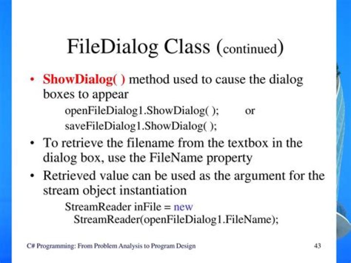 A dialog box (also spelled dialogue box, also called a dialog) is a common type of window in the GUI of an operating system. The dialog box displays additional information, and asks a user for input. For example, when you are using a program and you want to open a file, you interact with the “File Open” dialog box.What is modal and modeless dialog box in C#?
