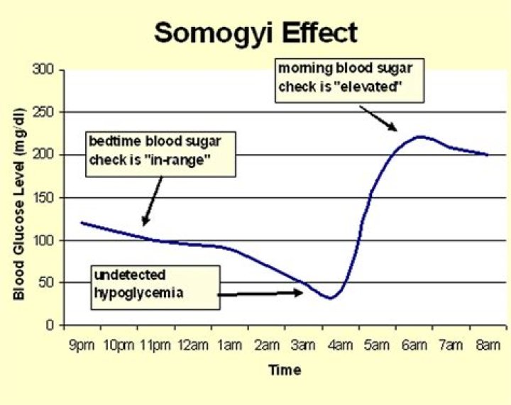The Somogyi effect can occur any time you or your child has extra insulin in the body. To sort out whether an early morning high blood sugar level is caused by the dawn phenomenon or Somogyi effect, check blood sugar levels at bedtime, around 2 a.m. to 3 a.m., and at your normal wake-up time for several nights.