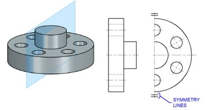 How do you indicate symmetry in engineering drawing?