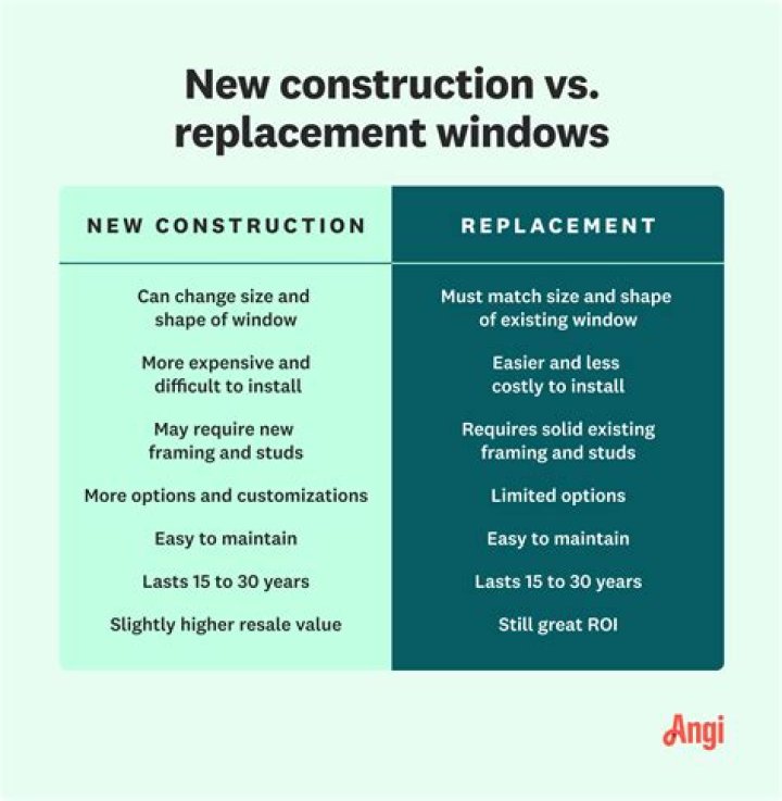 New construction windows are used when a brand new home or a new addition to a home is being built. Since the studs of the home are exposed the window can be installed directly on to the frame by use of a nail fin frame, which means it is nailed into the framing of the home.What is meant by replacement window?