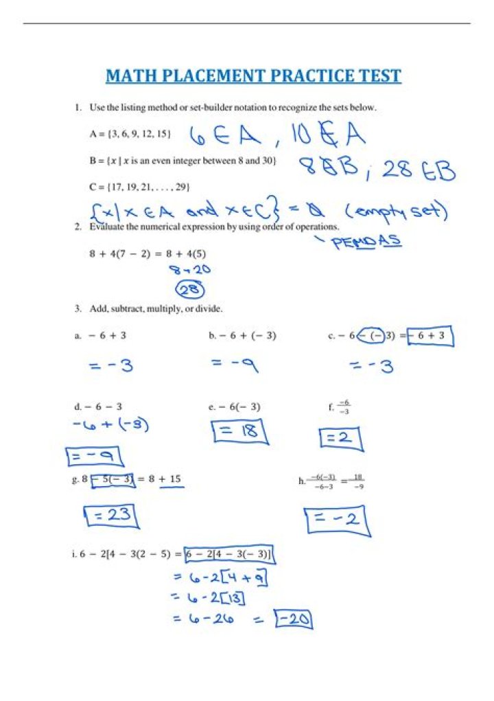 What does a college math placement test look like?