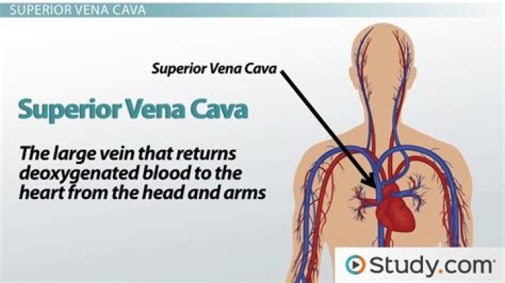 Superior vena cava. The superior vena cava is one of the two main veins bringing de-oxygenated blood from the body to the heart. Veins from the head and upper body feed into the superior vena cava, which empties into the right atrium of the heart.