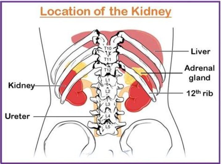 The kidneys are two bean-shaped organs, each about the size of a fist. They are located just below the rib cage, one on each side of your spine. Healthy kidneys filter about a half cup of blood every minute, removing wastes and extra water to make urine.