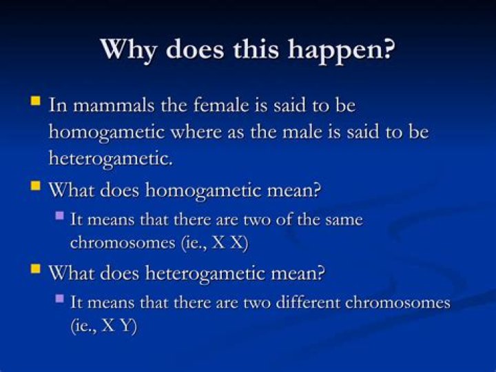 In humans, females generally have 2 X chromosomes while males have a pair of XY chromosomes. The female (in humans and most other mammals) is called the homogametic sex, while the male is called the heterogametic sex. … In some other animal species, like in some birds and reptiles, the homogametic sex is the male.