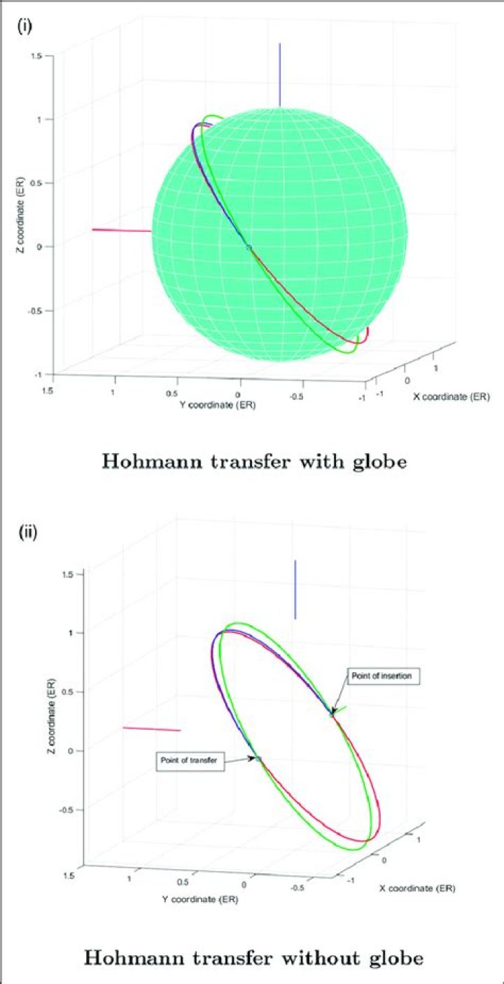 A Hohmann Transfer is a two-impulse elliptical transfer between two co-planar circular orbits. The transfer itself consists of an elliptical orbit with a perigee at the inner orbit and an apogee at the outer orbit.